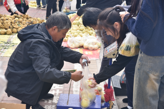 本次消费帮扶活动以“消费帮扶暖民心,爱心助农促振兴”为主题。活动之前,组织部发挥组织优势,联合宣传部精心设计宣传页面,组织动员各基层党组织将帮扶活动信息传达给每一位师生,并积极协调相关部门给予展销帮助。活动当天,全校广大党员干部、师生、教职工及家属积极消费助农,帮扶现场秩序井然、气氛热烈。驻村干部和志愿者们除了带头消费外,还当上了临时“促销员”,亲自上阵帮助桃农解桃袋、分拣、装袋、称重、销售雪桃。仅三个小时从村里拉来的2万多斤雪桃就几乎销售一空,驻村工作队又迅速联系村里现摘几千斤雪桃送到学校。爱心助农,让雪桃甜在师生嘴里,美在果农心里。