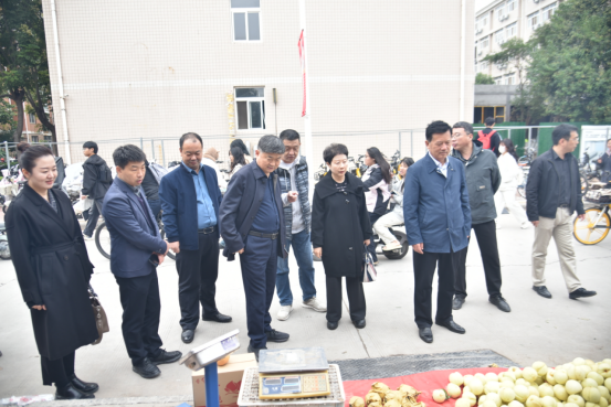学校党委书记孙功奇,校长王孝俊,学校党委副书记、工会主席高炜,副校长杨钧、赵伟杰一行来到展销现场,九龙泉村驻村第一书记栾绍军汇报了此次消费帮扶活动的筹备及销售情况,校领导叮嘱驻村工作队的同志们要继续坚持求真务实的作风,脚踏实地,用心用情用力解决群众急难愁盼问题,切实为群众办实事、办好事,以实际行动和成效来不断提升群众满意度和认可度,持续推进精准帮扶工作,为乡村振兴“添砖加瓦”。随后校领导又来到摊位前,亲切地和老乡唠家常、话家常、买雪桃,并同时了解驻村帮扶工作队在党建引领、政策落实、产业发展、村集体经济壮大等方面情况和个人生活中的实际困难。
