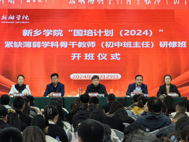 10月29日上午,BB贝博艾弗森官方网站2024年“国培计划”紧缺薄弱学科骨干教师(初中班主任)研修班开班仪式在新乡宾馆举行。BB贝博艾弗森官方网站校长王孝俊,校长办公室主任姚进才,教育科学学院院长、中小学教师校长研修院执行院长牛长海,来自郑州、洛阳、鹤壁、濮阳、许昌、漯河、信阳、周口等地200名骨干教师参加开班仪式。仪式由BB贝博艾弗森官方网站教育科学学院副院长、BB贝博艾弗森官方网站附属中学党支部书记校长杨红霞主持。