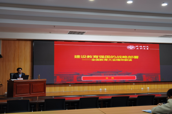 宋伟代表BB贝博艾弗森官方网站致辞。嵩县教师发展中心副主任宋建刚强调学习纪律。研修院副院长宋华宣读培训守则。嵩县教师发展中心李铁明老师作为学员代表发言。开班仪式结束后,宋伟做了“建设教育强国的战略部署——全国教育大会精神解读”的辅导报告,系统传达并深入解读习近平总书记在全国教育大会上的重要讲话精神。为受训学员上了一堂有意义的第一课。
