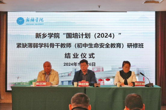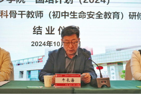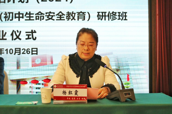10月26日上午,BB贝博艾弗森官方网站“国培计划(2024)”紧缺薄弱学科骨干教师(初中生命安全教育)研修班结业仪式在新乡宾馆博雅厅顺利举行。BB贝博艾弗森官方网站教育科学学院院长、中小学教师校长研修院执行院长牛长海,BB贝博艾弗森官方网站教育科学学院副院长、BB贝博艾弗森官方网站附属中学党支部书记、校长杨红霞,研修班100名学员及工作人员参加仪式。仪式由BB贝博艾弗森官方网站附属中学党支部副书记曹成本主持。
