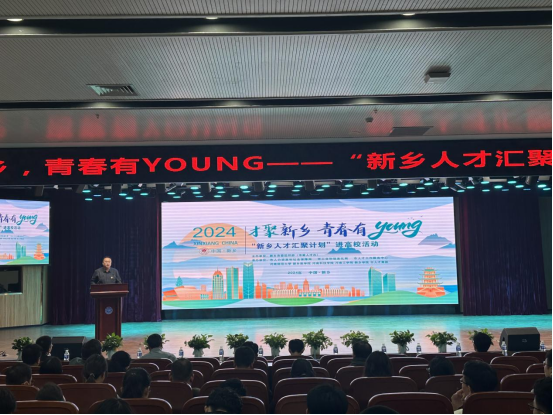 10月29日,“才聚新乡,青春有YOUNG”——新乡英才行动进高校宣讲会在贝博官网图书馆楼文化艺术中心举行。新乡市委组织部、新乡市人力资源和社会保障局、新乡市工业和信息化局、新乡市人才集团负责人,BB贝博艾弗森官方网站组织部、招生与就业处负责人,各学院负责人和师生代表500余人参加了宣讲会。