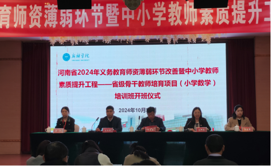 10月26日上午,由贝博官网中小学教师校长研修院承办、数学与统计学院组织实施的河南省2024年义务教育师资薄弱环节改善暨中小学教师素质提升工程——省级骨干教师培育项目(小学数学)研修班在新乡市九州宾馆西三楼宴会厅举行了开班仪式。BB贝博艾弗森官方网站教育科学学院院长、中小学教师校长研修院执行院长牛长海教授、数学与统计学院党委书记毛群英、数学与统计学院党委副书记王仁举、培训项目组全体成员以及来自周口、漯河、新乡、驻马店、南阳等学校的125名参训教师参加了开班仪式。开班仪式由毛群英主持。