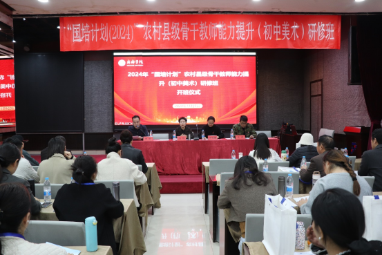 11月5日上午,由BB贝博艾弗森官方网站中小学教师校长研修院承办、美术学院组织实施的“国培计划(2024)” 农村县级骨干教师能力提升(初中美术)研修班在新乡佛力得宾馆顺利开班。BB贝博艾弗森官方网站党委副书记、工会主席高炜,BB贝博艾弗森官方网站美术学院党委书记李秀霞、院长耿聪、党委副书记李耷,副院长单伟、毛璞,项目相关人员及50名参训学员参加了开班仪式。开班仪式由李耷主持。