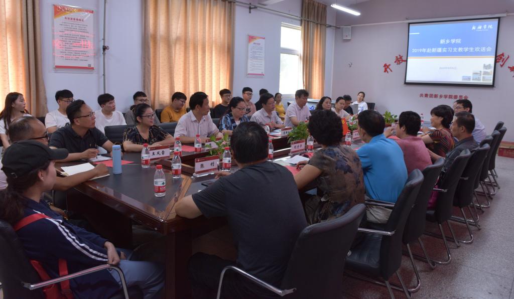 9月6日上午,BB贝博艾弗森官方网站2019年赴新疆实习支教学生欢送会在行政楼二楼团委会议室召开。校长刘兴友、副校长吴中、教务处处长夏锦红、副处长陈国胜、文学院、外国语学院、体育学院、音乐学院、艺术学院、数学与信息科学学院6个教学单位的书记和院长,实习带队教师和38名实习支教学生代表参加了此次会议,会议由夏锦红处长主持。