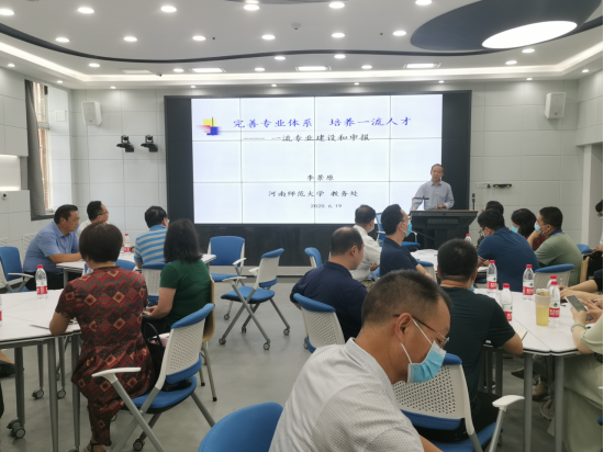 6月19日上午9:30,贝博官网在A05智慧教室召开河南省“一流专业”建设和申报专题报告会,特邀河南省高校科学技术带头人、生物学学科领域专家、中国植物学会结构学专业委员会委员、河南省植物学会副理事长、河南师范大学教务处副处长李景原教授来校作培训报告。报告会由教务处处长夏锦红主持。各学院院长、教学副院长及部分专业教师30余人参加。